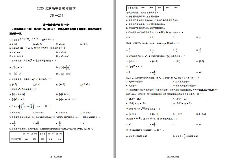 2025北京高中合格考数学(第一次)(教师版)-答案.pdf